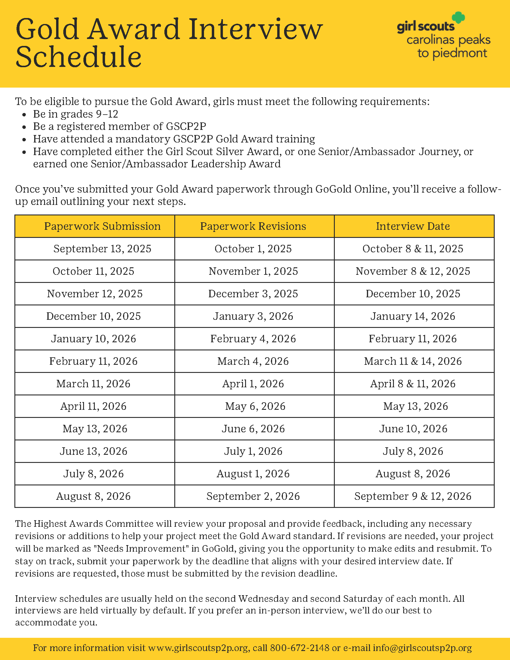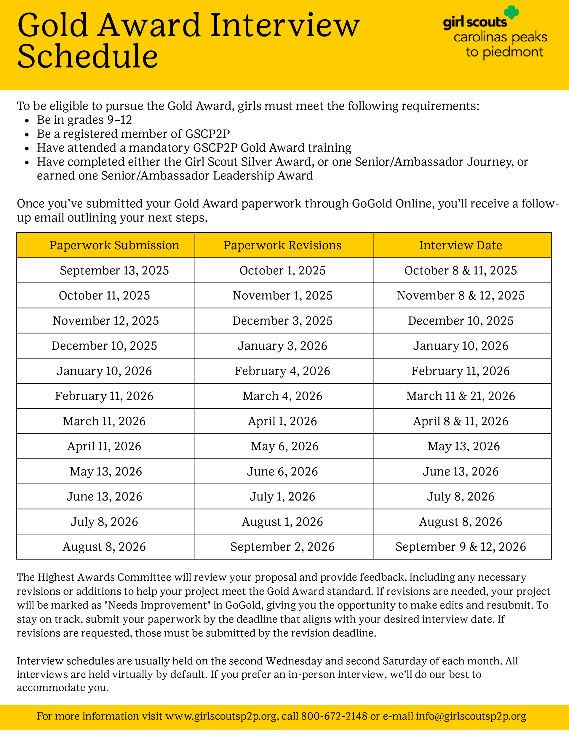 Remember: Girl Scouts may not start implementing their project until they have received approval from the Girl Scout Gold Award Committee.